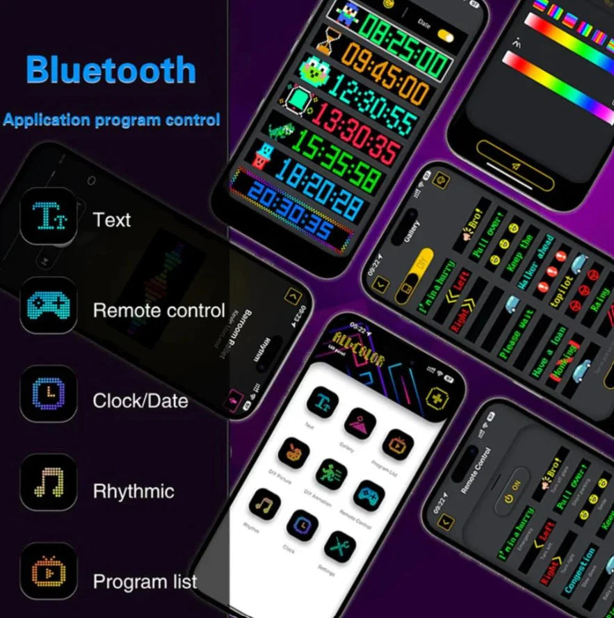 You can easily control it through the mobile app (available for iOS & Android). Just connect via Bluetooth and start displaying your favorite designs instantly.